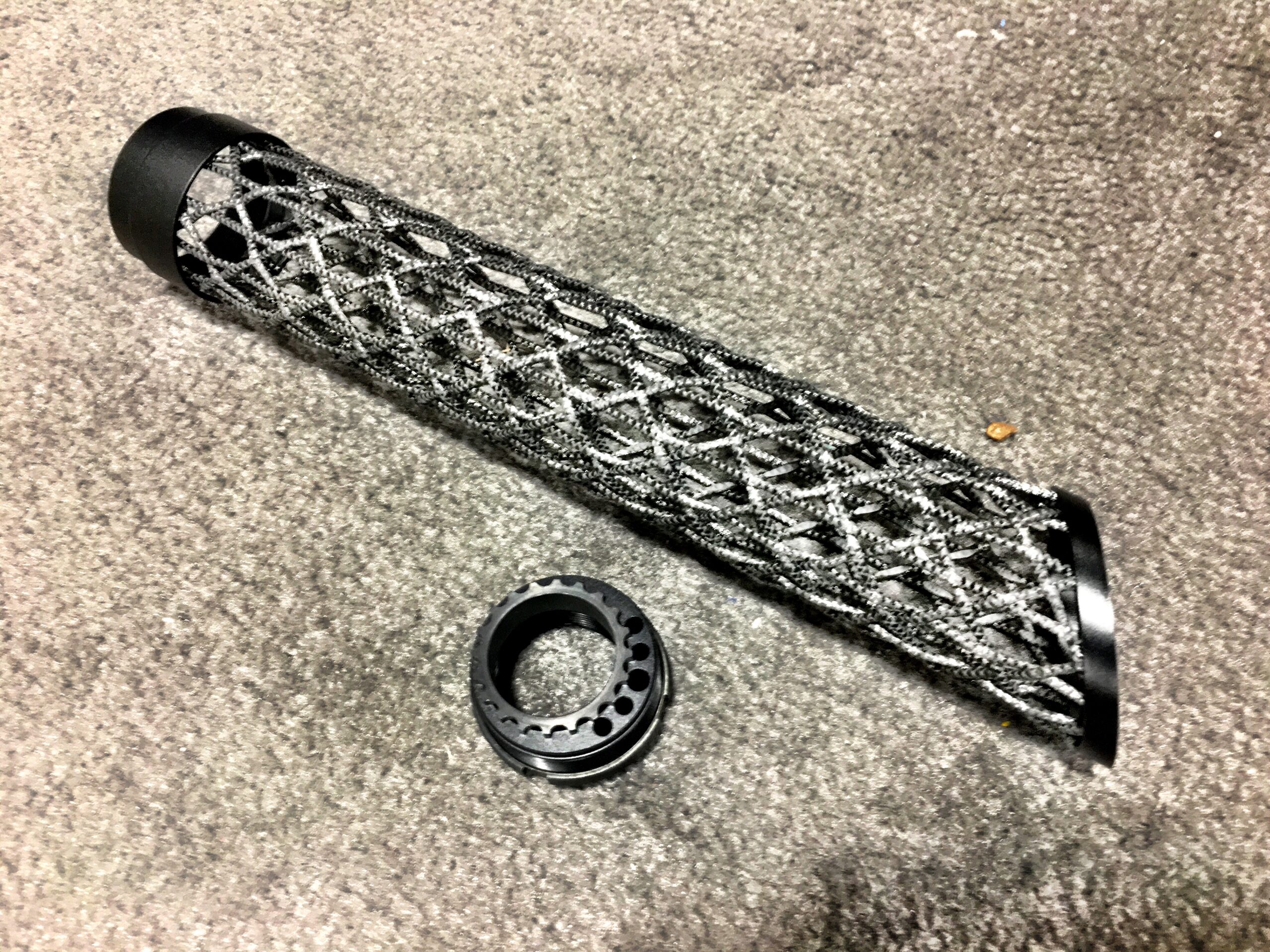 Neat stuff from the people who figured out how to make airy and light AR-15 handguards from magic carbon fiber yarn. After curing, the web becomes rock hard and amazingly durable. New this year is the Blade handguard shown here. Also a .308 handguard adapter if you like to shoot AR-10s.