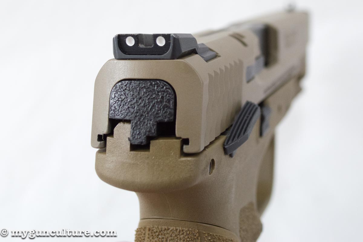 - The standard M&P 2.0 includes white three-dot sights.