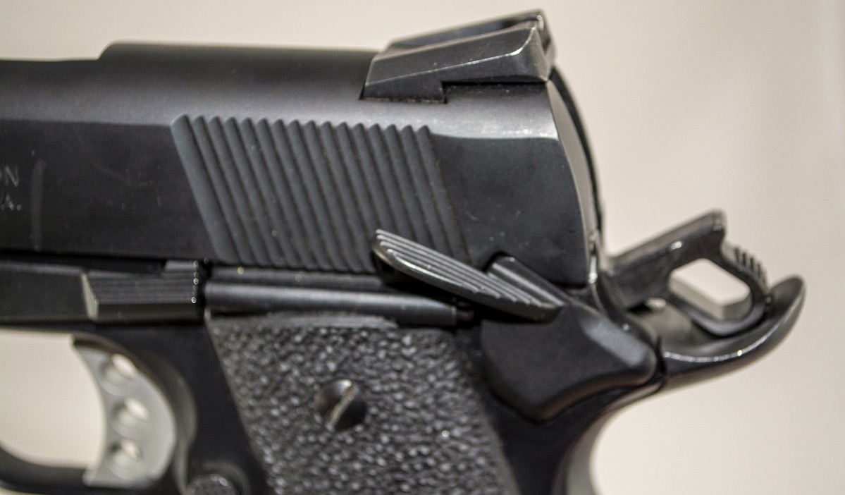 The de-cocker / safety lever on this Beretta 92 FS Compact is an additional layer of “safety” for carrying a chambered round.