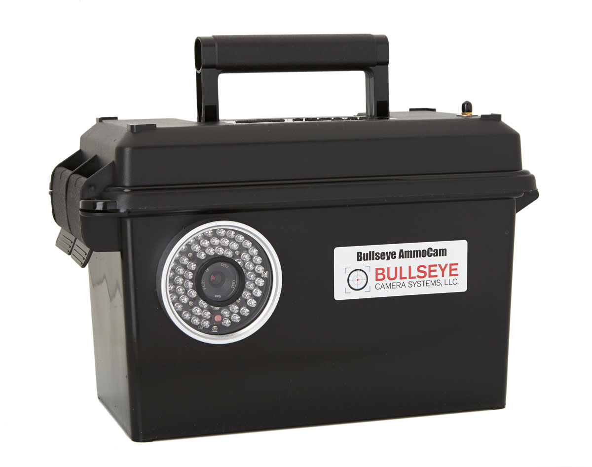 Now, Bullseye has taken convenience to a whole new level. Completely contained in a standard size ammo box, the new Bullseye AmmoCam sits on the ground in front of your downrange target. The camera remains inside the box and records through a hole in the side. A wireless device inside the can transmits the images back to a computer, tablet or smartphone device back on the shooting bench.