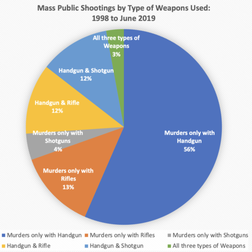 With all the discussion about having another assault weapon ban, only 13% of mass public shootings are done with any type of rifle. Among the other findings, about 9 in 10 of the attacks are in gun-free zones, more than half the …