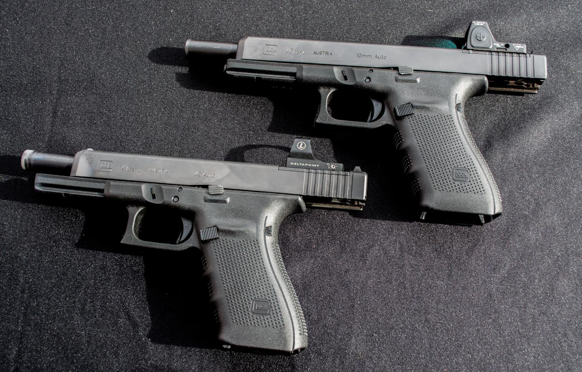 The new product line announcements include a series of optics-ready enhancements to existing pistols and a new 10mm handgun. All four new guns feature the Glock Modular Optic System (MOS) system. MOS pistols include custom-milled frames and mounting plates that allow attachment of holographic optical red dot sights.
