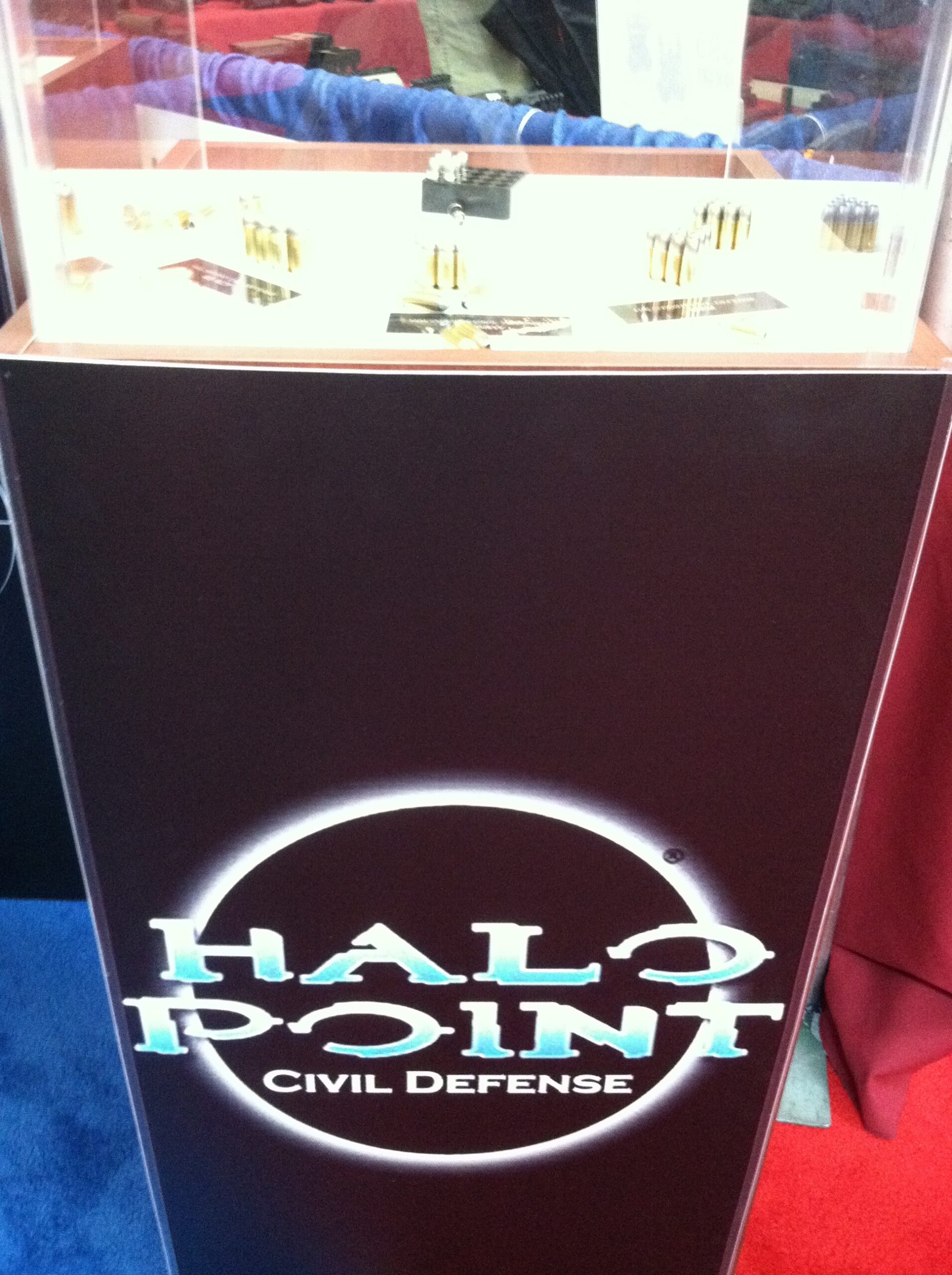 Met Julie from Halo Point Ammunition. They’re introducing a civilian self-defense oriented line that we’re going to have to try out. In short – lead-free, fragmenting hollow-points that cook along in the 2,000 fps range with about 16% less felt recoil than traditional self defense rounds.