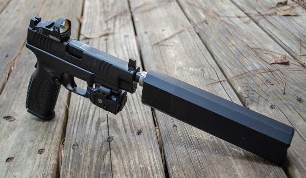 Tinkering around with a new gun and some sweet accessories has got me thinking about high-tech home defense pistols. I’ve been testing out the new Springfield Armory XD(M) OSP Threaded model with all of its associated bells and whistles to explore the concept. As for sweet accessories, I’ve added a Crimson Trace Railmaster Pro and SilencerCoOsprey 45 Suppressor to complement the Vortex Venom red dot sight already included.