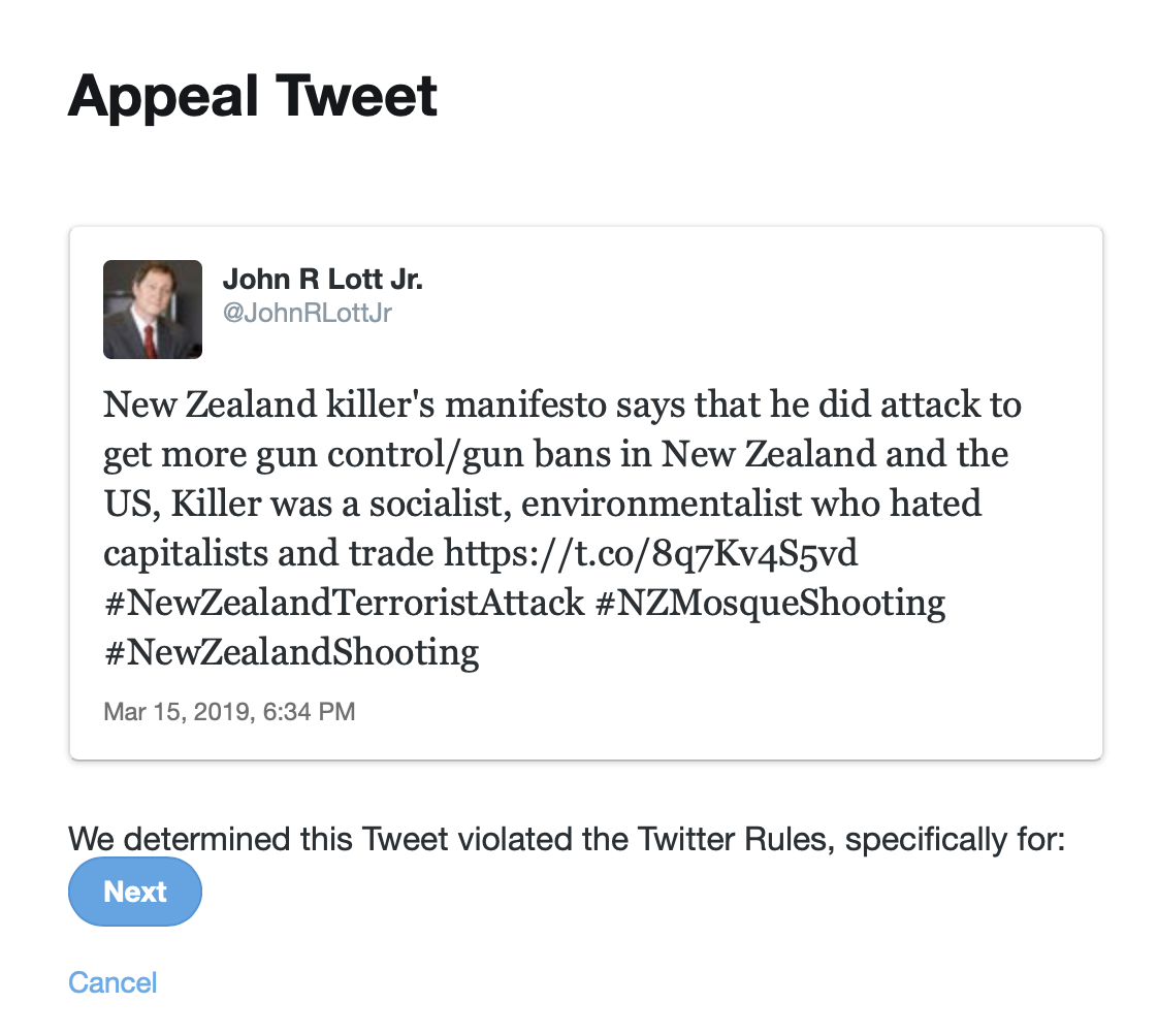 Twitter Rejects Appeal to Unlock John Lott’s Account