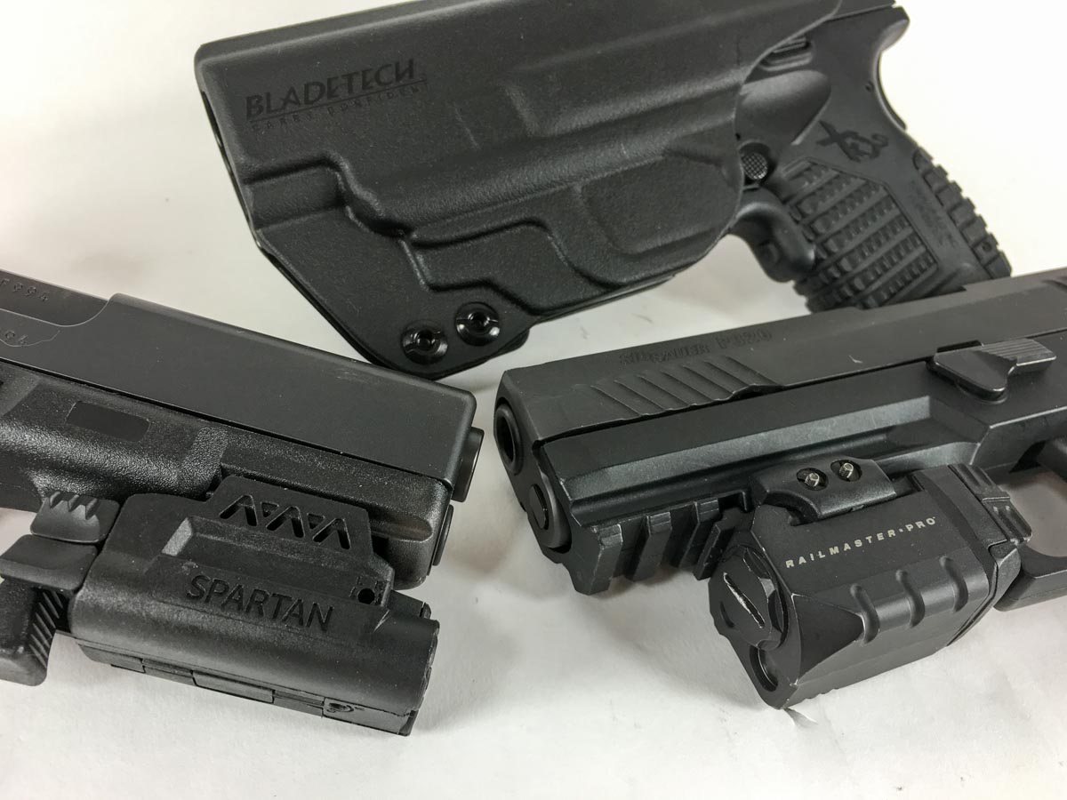 The combo laser and light unit packs a whopping 500 lumens of steady or strobing light (your choice) into the small footprint powered by a CR123A battery. It’ll run for about an hour and a half with light and laser activated.