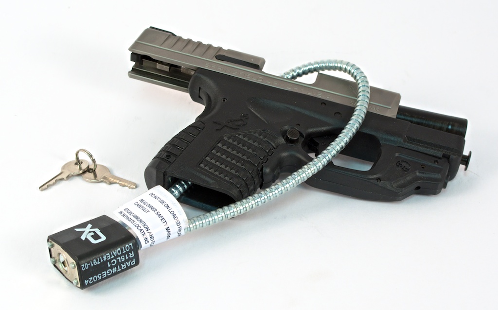Since 2005, as part of the Protection of Lawful Commerce in Arms act, every new gun manufactured or imported for civilian sale must include a safety lock. Usually these locks are some combination of padlock and cable that are designed to prevent operation of the gun action, thereby rendering it incapable of firing. If you already own a gun, or bought a used one, you can still easily get a safety lock, usually for free. The National Shooting Sports Foundation’s Project ChildSafe program provides free locks across and many gun stores will give you a free trigger lock if you ask.