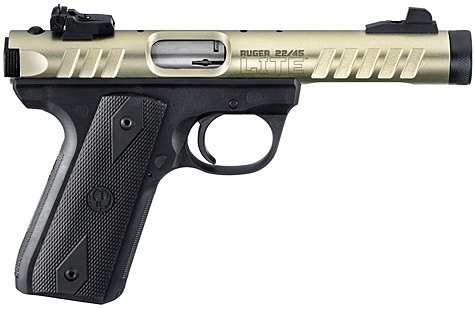 | Ruger 22/45 LITE Rimfire Pistol – This fun little .22LR pistol is shockingly light. No really, shockingly light. Oh, and phenomenally cool. The gold receiver and barrel shroud is tastefully colored and the contour cuts are just plain sporty. Look for this in different colors something in the future. |